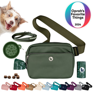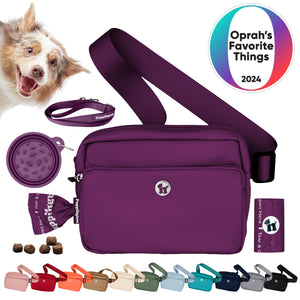 Puppington 3-in-1-Umhängetasche für Hundeleckerlis mit Kotbeuteln, Reisenapf für langsames Fressen und reflektierender Leine