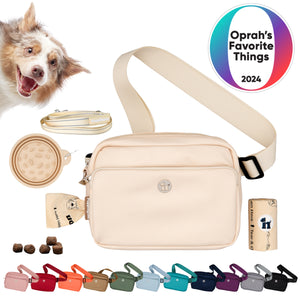 „Walk & Wag“ mit dem luxuriösesten Geschenkset der Saison für Hundebesitzer. Mode trifft Funktionalität mit Oprahs beliebtestem 3-in-1-Geschenkset aus Umhängetasche und Leckerli-Tasche, Reisenapf, reflektierender Leine, Clip für gebrauchte Kotbeutel und Kotbeuteln. Dieses unverzichtbare 3-in-1-Geschenkset aus Umhängetasche und Leckerli-Tasche macht jeden Ausflug mit Ihrem Hund mühelos, organisiert und sicher. Diese multifunktionale Tasche wird mit einem langsamen, rutschfesten Reisenapf geliefert, um gesündere Essgewohnheiten Ihres Welpen zu fördern. Die 1,8 m lange Leine ist reflektierend für mehr Sicherheit am Abend und verfügt über einen weichen Neoprengriff für bequemen Halt. Perfekt kombinierbar mit den passenden kompostierbaren Kotbeuteln von Puppington.